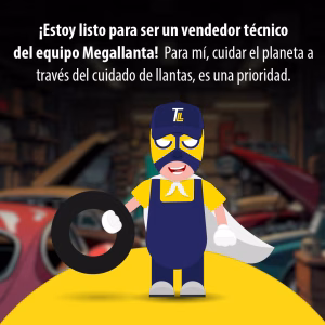 Mememo entendió que el éxito de un vehículo era el cuidado de sus llantas. Finalmente es el contacto directo con el suelo. Así que se dedicó a estudiar cómo darles una mayor vida para venderle a las empresas del país. Sin embargo, los transportadores no le creían mucho, incluso les parecía algo absurdo, finalmente una llanta es una cosa negra y redonda. Pues, convencido de su propósito, se vistió de MEGALLANTA, y salió a enseñarle a todos los conductores cómo cuidar sus llantas para darles una mayor vida, un mejor cuidado y así un mejor rendimiento a todos los componentes de sus vehículos.